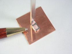溶接させる部品の溶接部に、個体のろう材を挟み込み、部品に電流と加圧を与えることで、部品は発熱をおこし、融点の低いろう材が溶けて溶接される方法です。ブスバー(バスバー)や、電気接点、眼鏡などの溶接に適しています。